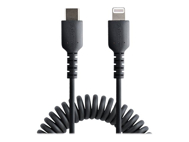 StarTech.com 1m (3ft) USB C to Lightning Cable, MFi Certified, Coiled iPhone Charger Cable, Black, Durable and Flexible TPE Jacket Aramid Fiber, Heavy Duty Coil Charging Cable