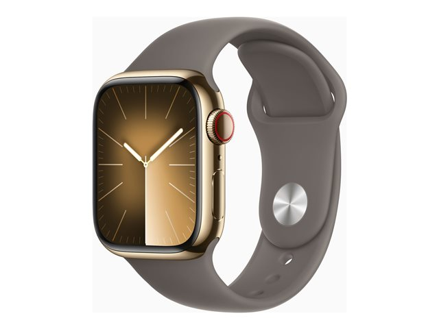 41 mm - gyllen rustfritt stål - smartklokke med sportsbånd - fluorelastomer - leire - båndbredde: S/M - 64 GB - Wi-Fi, Bluetooth, UWB, LTE - 4G - 42.3 g