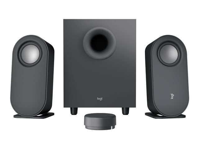Få flott lyd på skrivebordet ditt med Z407 Bluetooth-høyttalere for datamaskiner. Det ekspertinnstilte 2.1-høyttaleranlegget har en toppeffekt på 80watt og en RMS på 40watt. Få oppslukende lyd med den nedoverrettede basshøyttaleren som gir "trøkk" i lyden, mens digital signalbehandling opprettholder klarhet gjennom hele lydspektret. Stilige ovale satellitthøyttalere som kan plasseres horisontalt eller vertikalt. Plasser dem slik det passer for deg. Kontroller det hele med den Bluetooth-aktiverte trådløse dreieknappen. Juster bass og volum, hopp over og pause spor uten å reise deg fra sofaen. Koble til med Bluetooth, USB-A eller 3,5 mm-innganger.