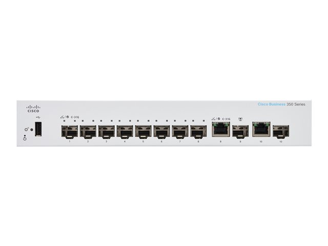The Cisco Business CBS350-8S-E-2G switch is part of the fully managed switch line that delivers reliable and secure connectivity for small business networks. These switches accelerate your digital transformation by delivering full Layer 2/3 capabilities, intuitive web dashboard, advanced networking features, and PoE+ support.