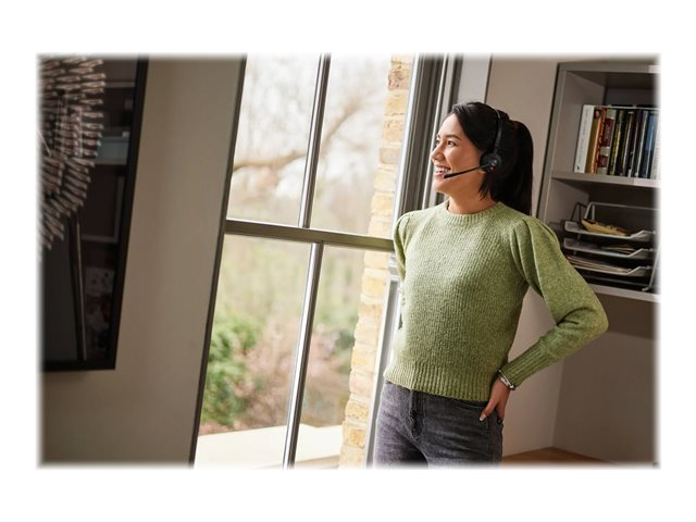 When you're in back-to-back calls or virtual meetings, every word matters. Engage 55 features an impressive noise-canceling microphone that helps block out background noise to keep you sounding like a pro, whichever office you're working from. The speakers are optimized for speech clarity, while wideband audio delivers crisp, crystal clear, natural-sounding calls. So you can wave goodbye to crackly, robotic-sounding voices, and say hello to more engaging conversations.