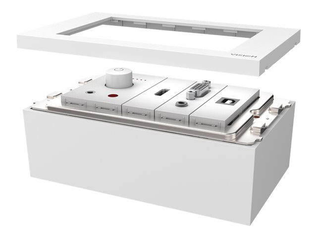A "surround" which comes in two parts fits to a backbox (or "mudring" if your wall is hollow), then the modules fix in place to complete the installation. Techconnect is based around standard UK backbox sizes, and Vision also offers mounting hardware for other countries.