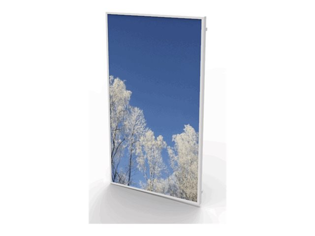 The HI-ND mounting component is designed for flat panel displays, accommodating a recommended size of 49 inches. This component supports both portrait and landscape orientation, making it suitable for various display setups. Ideal for use in kiosks, the front cover design ensures that the display remains protected while providing a sleek appearance complementary to any environment.