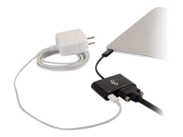 The USB-C to VGA video adapter converter with power delivery is an ideal solution for connecting a device with a USB 3.1 Type-C connector to an HDTV, projector, or other display with a VGA port while simultaneously charging the source device. The video support is built into the USB Type-C ports to feed a video signal to a VGA HDTV or projector.