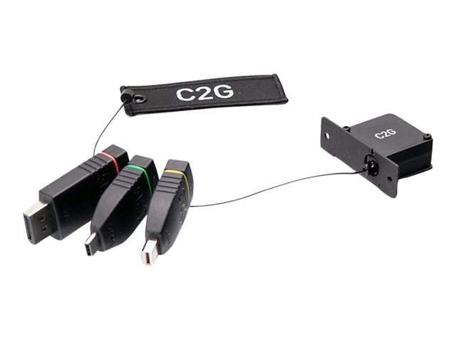 C2G Retractable Table Box Mount 4K HDMI Adapter Ring with Color Coded Mini DisplayPort, DisplayPort, and USB-C - Videoadaptersett - svart - 4K-støtte 29880