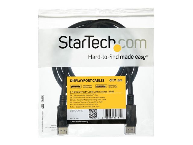 StarTech.com 5m Long DisplayPort 1.2 Cable with Latches DisplayPort 4k - DisplayPort-kabel - DisplayPort (hann) til DisplayPort (hann) - 5 m - låst - svart DISPL5M