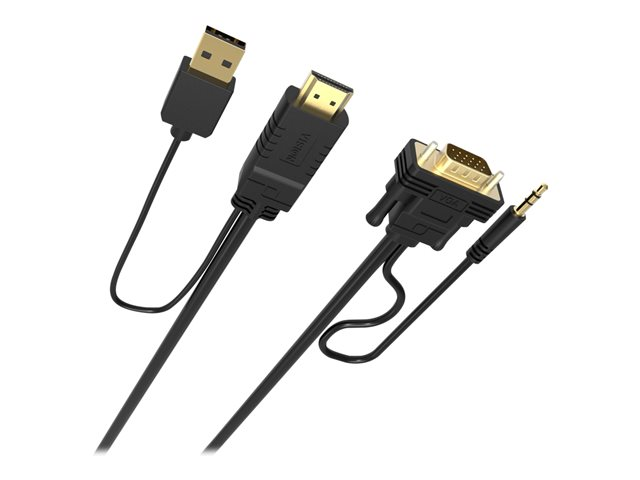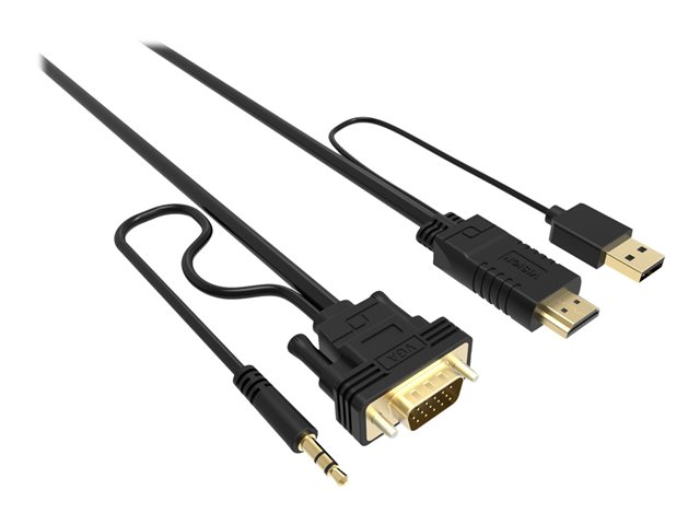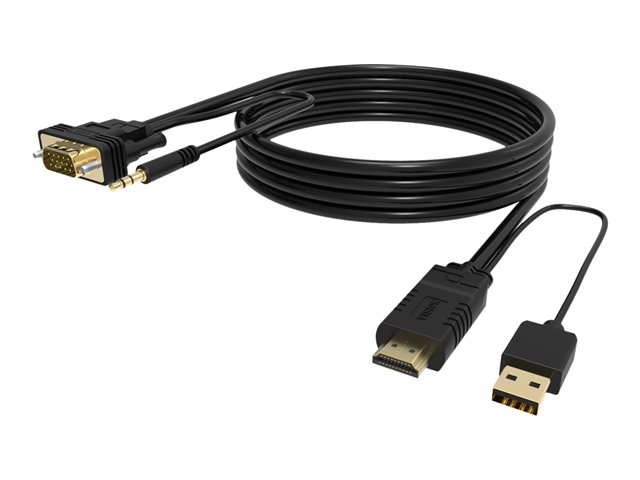 The Vision Techconnect is a versatile video/audio cable that enhances your multimedia experience. It supports a maximum output resolution of 1920 x 1080 and a refresh rate of 60 Hz, ensuring clear and smooth visuals. The adapter's gold-plated connectors provide a reliable connection. It is designed for convenience, featuring a USB power option. The stereo audio output ensures immersive sound. Its compatibility with HDMI, VGA, audio, and USB interfaces makes it a universal solution for connecting a wide range of devices. Ease of use is emphasized with its Plug-and-Play compliance, requiring no additional software or drivers for setup.