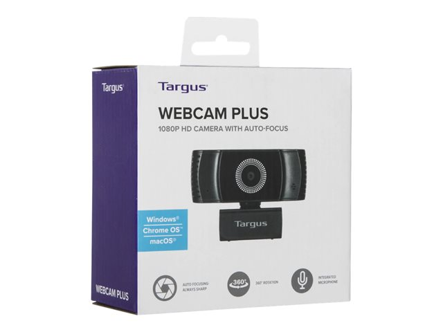 Connect to the world in Full HD with the Targus Webcam Plus Full HD 1080p Webcam with Auto Focus. A step-up from typical laptop webcams thanks to its bright aperture lens, CMOS censor and auto lighting correction all working in unison to ensure high-quality Full HD video even in less than optimal light. Plus auto focusing technology keeps you sharp in frame at all times, so you no longer appear to be a blurred, fuzzy avatar on screen, ideal for home working professionals that demands high-quality video conferencing.