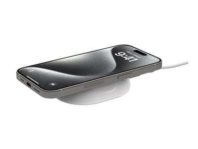 The Belkin BoostCharge Pro wireless charging stand is tailored for the modern cellular phone user, offering efficient wireless charging with its 15 watts of power. It features a convertible design for use as both a pad and a stand, suiting various charging needs. The stand ensures your device remains securely in place thanks to its magnetic fixation and non-slip base. Made from 60% recycled post-consumer plastic, the BoostCharge Pro is an eco-friendly choice that does not compromise on quality or performance. It complies with FCC, Qi, REACH, RoHS, and USB-IF standards, demonstrating its commitment to safety and high-quality standards.
