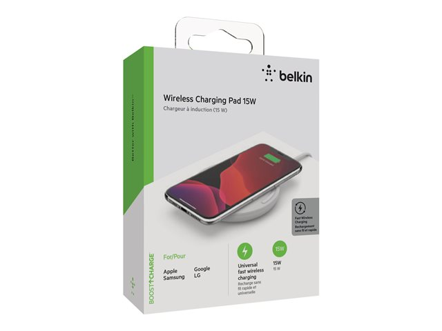 Designed to deliver fast wireless charging for the latest smartphones, the 15W BOOST CHARGE Wireless Charging Pad couldn't be easier to use. Unclutter your bedroom, office, or kitchen counters by going wireless - just place your phone on the pad and start charging instantly. LED light indicators and non-slip surface keep your phone charging correctly, and a 24W Quick Charge 3.0 power supply unit is included.