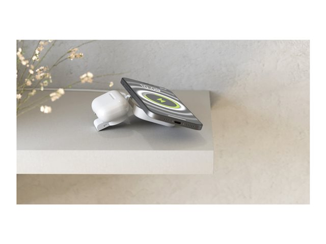 ZENS 2-i-1 MagSafe + Watch trådløs ladeplate er en allsidig løsning for lading av enhetene dine. Den har plass til både mobiltelefoner og smartklokker, og har en utgangseffekt på 20 W for effektiv lading. Med et innebygd støttebein er det enkelt å komme til enhetene mens du lader. Den flettede USB-C til USB-C-kabelen er slitesterk og gjør det mulig å lade opptil to enheter samtidig uten at det går på bekostning av ytelsen. Denne ladeplaten er kompatibel med MagSafe, noe som gir en sikker og effektiv ladeopplevelse.