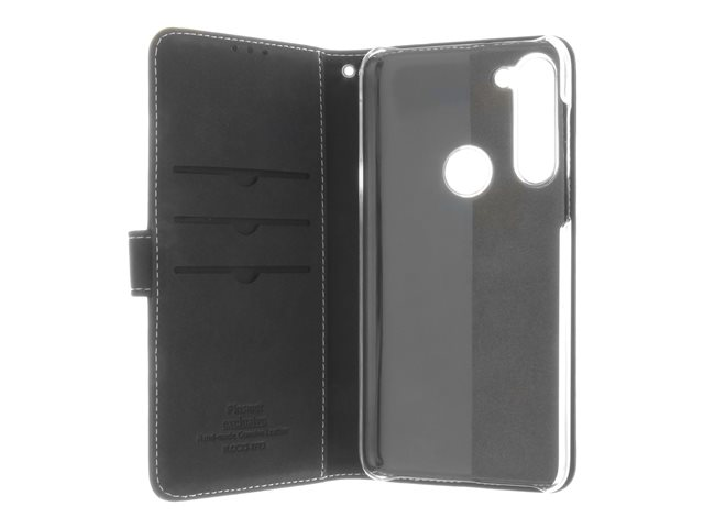Insmat Exclusive Flip Case - Lommebok for mobiltelefon - ekte skinn, polyuretan, polykarbonat - svart - for Motorola Moto G8 Power