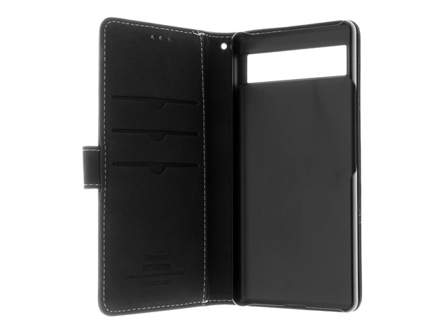 Insmat Exclusive - Lommebok for mobiltelefon - lær, kartong+papir+aluminiumsfolie, polykarbonat - svart - for Google Pixel 6a 650-3208