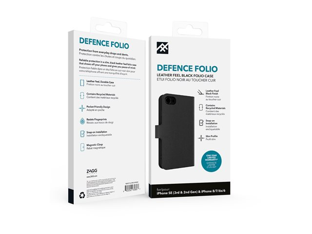 iFrogz Defence - Lommebok for mobiltelefon - lær - svart - for Apple iPhone 6, 6s, 7, 8, SE (2nd generation), SE (3rd generation) 302007106