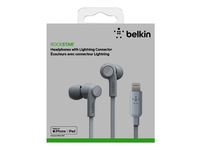 Belkin ROCKSTAR - Ørepropper med mikrofon - i øret - kablet - Lightning - lydisolerende - hvit - for Apple 10.5-inch iPad Pro; iPad mini 4; iPhone 7, 7 Plus, 8, 8 Plus, X, XR, XS, XS Max