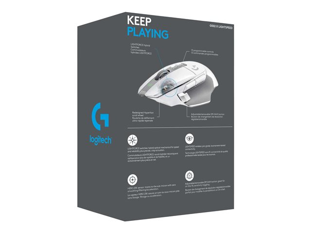 En populær spillmus - nå gjenoppfunnet og redesignet. G502 X LIGHTSPEED har avanserte innovasjoner innen spillteknologi, inkludert LIGHTFORCE: en hybrid optisk-mekanisk bryterteknologi. Nå er utrolig hastighet og pålitelighet, samt presis aktivering, ett. Komplett med oppdatert trådløs LIGHTSPEED-teknologi med 68 % raskere responstid, nydesignet rullehjul med to moduser, tynne vegger og optimalisert batteri for mange timers spilling.