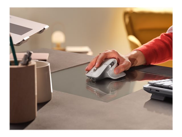 | Egenskaper | Tommelhjul, håndbevegelsesfunksjon, ladbart batteri, Quiet Clicks-teknologi, MagSpeed-hjul, tommelstøtte, Logitech Darkfield Laser Tracking, tilpassbar DPI, Logitech Flow |