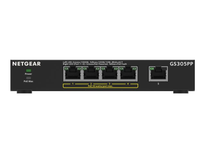 NETGEAR 300 Series GS305PP - Switch - SOHO - ikke-styrt - 5 x 10/100/1000 (4 PoE+) - stasjonær, veggmonterbar - PoE+ (83 W)