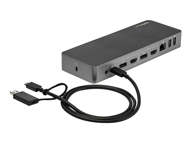 The USB-C and USB 3.0 docking station provides IT professionals with a convenient one-dock solution for offices using different laptop brands and operating systems. The dock works with Dell, HP, Lenovo, MacBook and most other laptops.