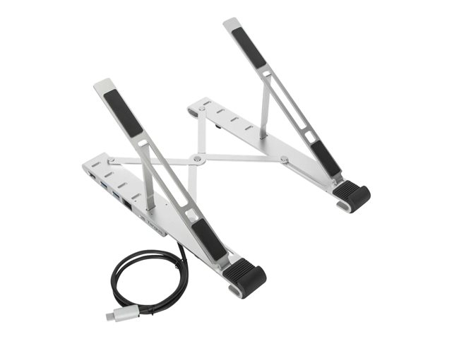 - Robust laptop stand with integrated dock, foldable to compact size (25.3 x 6 x 1.83 cm), ideal for modern hybrid workers travelling between work locations