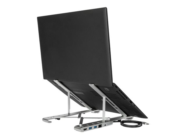 - Simply sit the laptop on stand, connect to all your peripherals and charge your laptop device via integrated USB-C cable