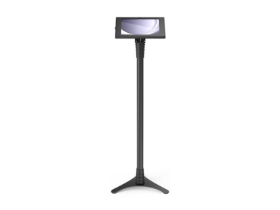 Vårt justerbare stativ kan stilles inn i ulike høyder: 39" - 45" / 100 cm - 115 cm, og stativet gjør det mulig å stille inn nettbrettet i enten stående eller liggende modus. Stativet er designet for maksimal stabilitet med en kraftig stålbase som gir kabelføring gjennom selve stativet. Under kabinettet er det et lite oppbevaringsrom for ladeenheten til nettbrettet.