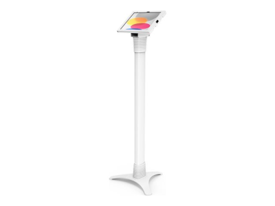 Vårt justerbare stativ kan stilles inn i ulike høyder: 39" - 45" / 100 cm - 115 cm, og stativet gjør det mulig å stille inn nettbrettet i enten stående eller liggende modus. Stativet er designet for maksimal stabilitet med en kraftig stålbase som gir kabelføring gjennom selve stativet. Under kabinettet er det et lite oppbevaringsrom for ladeenheten til nettbrettet.