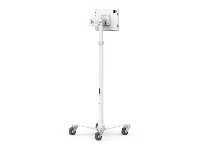 This rolling cart is equipped with four wheels and brakes, allowing for easy mobility and stability. The 90° tilt adjustment and pan capability provide flexibility in positioning the tablet for optimal viewing angles. Included in the package are key components such as a key for locking and two 6" extension arms for further versatility in mounting. This cart enhances functionality while ensuring that the tablet remains secure and accessible in various settings.