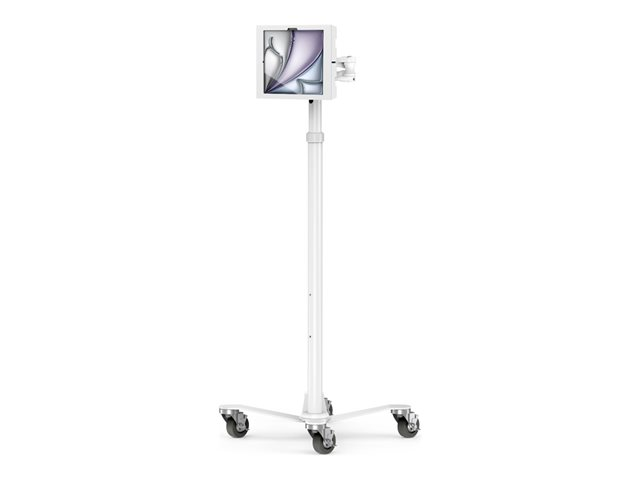 The Compulocks iPad Air M2 & M3 13" Apex Enclosure Rolling Cart provides a secure and versatile mounting solution for tablets. Crafted from aluminum, this durable cart features a powder-coated finish for a professional look. With an adjustable height feature, users can customize their setup to enhance comfort and usability. The integrated cable management system keeps wires organized, providing a clean aesthetic while ensuring safety in various environments, including medical settings. The cart includes a lockable design for added security, making it suitable for public spaces or high-traffic areas.