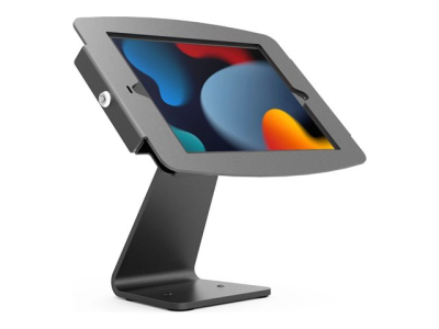 Our 360 stand is a longtime best-seller intended for counter-top use as a secure interactive display or kiosk. The combination of the Space enclosure and 360 base allows you to display your tablet in a professional manner with a clean and comfortable look. This counter-top tablet Kiosk has full screen tilt that allows you to reverse the screen to show your customer, visitor, or clientele the on-screen information. The mount allows you to easily rotate your tablet between portrait and landscape modes and the base can be securely bolted to the counter.