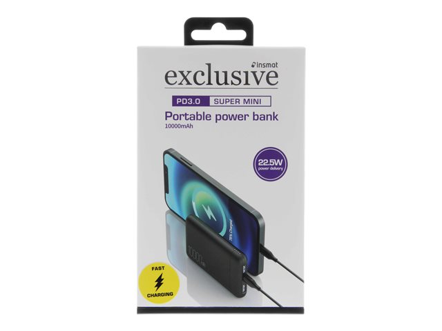Insmat - Strømbank - 10000 mAh - 22.5 watt - 5 A - PD 3.0 - 3 utgangskontakter (USB, 24 pin USB-C)