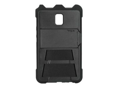 Functionality is at the forefront of its design, featuring a hand strap for secure handling, a stand function for optimal viewing angles, and additional compartments for accessories like an S Pen. The inclusion of an asset tag window further enhances its utility, making it perfect for professional settings where device identification is crucial. Whether for field work or daily use, the Targus Field-Ready case is a smart choice for protecting and utilizing your tablet.