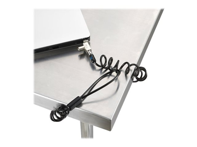 The Kensington Slim N17 2.0 Portable Keyed Laptop Lock for Wedge Shaped Slots is designed for safeguarding your laptop. It features a self-coiling cable and a pivoting lock head for flexibility and ease of use. Made from carbon steel, this security cable lock provides a sturdy defense against theft. The 5mm Keying System enhances security, while the Register & Retrieve feature offers a reliable way to recover lost keys, ensuring protection in various settings.